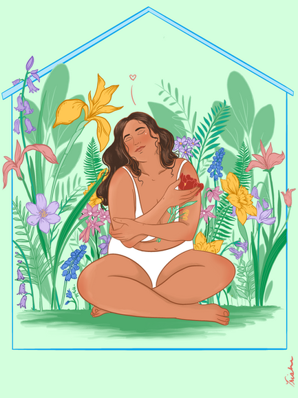 Illustrations depicting themes of self love, women upliftment and mental health.